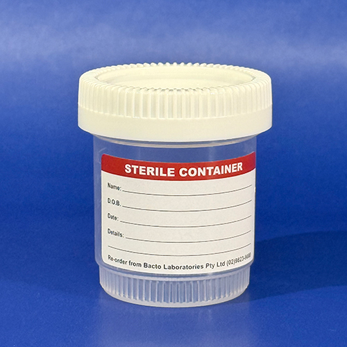 80ml Sample Jar, Flat Bottom, Polypropylene, Gamma Sterile, Labelled, Box 500