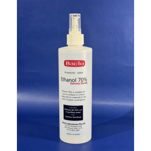 Ethanol Undenatured 70% AR (CAS 64-17-5) ER70U PERMIT REQUIRED, UN No 1170, DG Class 3, Gamma Sterile, 500ml Spray Pack