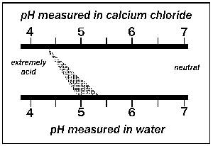 There are many different ways of measuring the pH of soil. Some use a saturated paste extract, others use a 1:5 dilution of soil: water, and then take a pH measurement on the resulting solution with a laboratory meter. Others use the 1:5 dilution, but instead of water they use a dilute Calcium Chloride (CaCl²) solution. As a rough guide, the pH in CaCl² is usually 0.8 pH lower than in water, but can be as much as 2.0 pH units lower on grey sands. Ensure that you check the method used to measure you soil pH so that you are comparing similar methods.